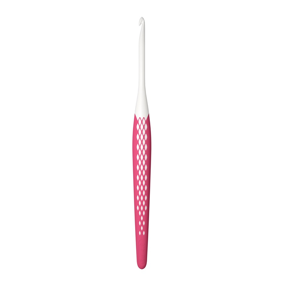 Crosete pentru lana, Prym Ergonomics, de 4 mm, lungime 16 cm Lungime 16 cm Marime 4 mm Maner ergonomic pentru crosetare fara efort Maner colorat pentru a identifica dimensiunea carligului Croseta este fabricata din materiale plastice speciale de inalta calitate. Manerul cu culori diferite, proaspete va ajuta sa identificati gabaritul necesar, astfel incat carligul de crosetat sa poata fi recuperat rapid din cosul de lucru.