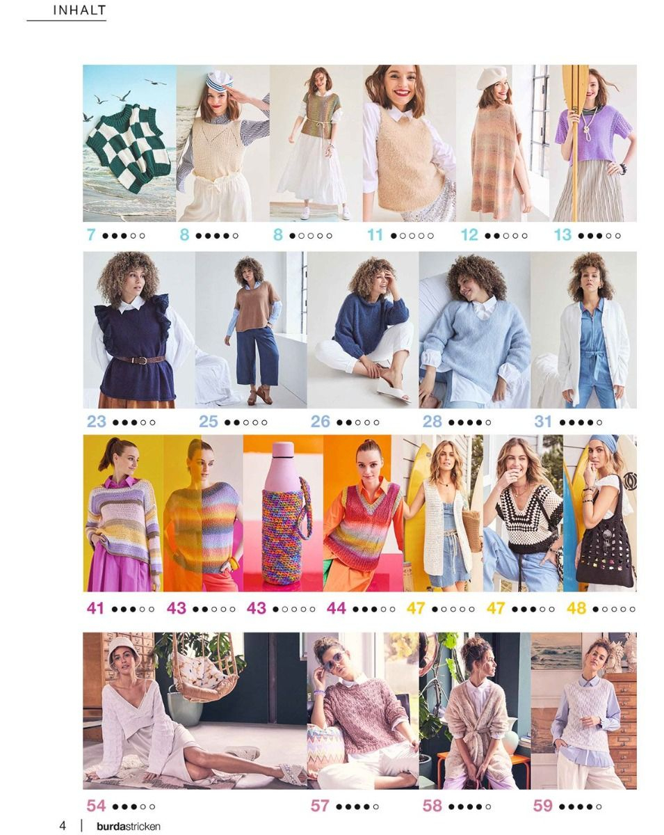 Buna vara! Mai sunt cateva saptamani pana acum - dar modelele noastre va vor aduce acum in starea de sarbatoare: pulovere cu dungi colorate, cardigane si accesorii in cele mai frumoase culori ale verii, pulovere fine si topuri care pot fi aranjate perfect peste bluze si camasi, dar care poate fi purtate si singure. Modele minunat de usoare, cu detalii Ajour delicate, look-uri puriste in tonuri deschise, topuri de vara crosetate si rochii in alb-negru la moda. Cei care il prefera natural isi vor castiga si banii: va prezentam modele sofisticate in culori din plante precum salvie sau rozmarin.- 43 de modele noi- Happy Colors: modele wow realizate din fire gradient- Piese Verzi: pulovere, camasi si cardigane in nuante trendy de verde- Perspectiva de plaja: look-uri crosetate de vis pentru zilele fierbinti- Tendinte de tricotat de varaA fi inspirat! Toate modelele cu instructiuni detaliate de tricotat si crosetat si recomandari pentru lana.Distreaza-te descoperind, citind, tricotand si crosetand!