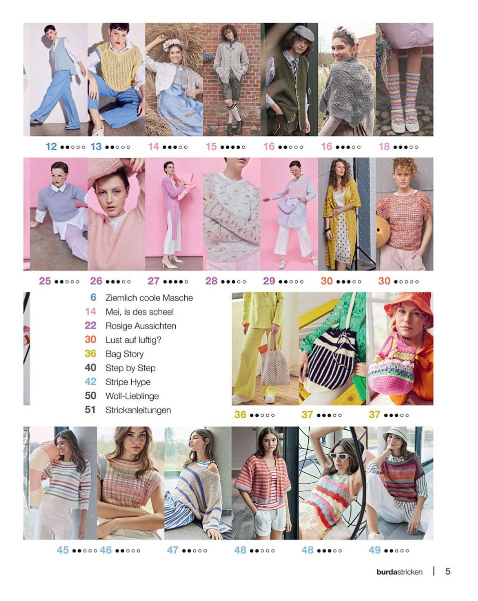 Aceasta editie va aduce o gura de aer proaspat andrelelor tale de tricotat si crosetat! Asteapta cu nerabdare tinute vaporoase de vara in culori pastelate delicate, articole de baza din bumbac usor si, bineinteles, o multime de dungi. Exista, de asemenea, genti crosetate la moda – perfecte pentru plaja si oras. Si pentru toti fanii costumelor traditionale: modele de tricotat pentru jachete dirndl, Janker si accesorii elegante. Distractie placuta la tricotat si bucurati-va de noul numar! In aceasta editie: - Cusatura destul de cool - articole usoare de baza pentru vara- Tendinta: costume traditionale - Hei, ce grozav!- Perspective roz - Tricotaj moale de vara in roz pastel- Ai chef de ceva aerisit?- Povestea pungilor - Adu gentile crosetate- Stripe Hype - pulovere cu dungi pe care vei dori sa le porti imediat