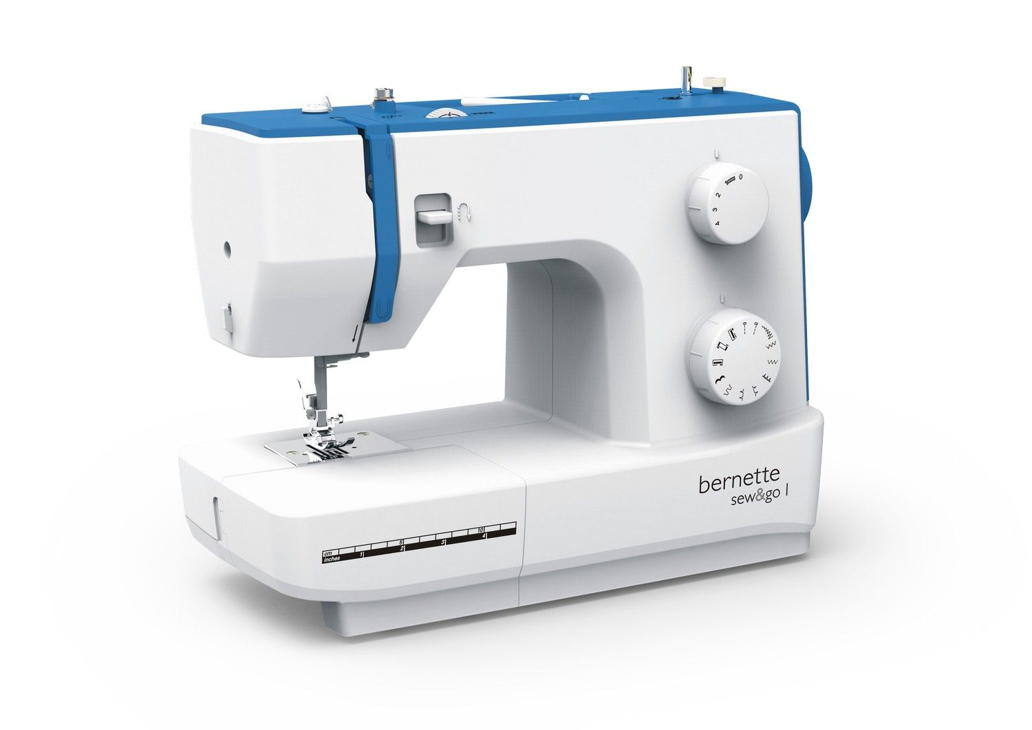 Masina De Cusut Bernette Sew&Go 1 cu design premiat este usor de folosit, fiind perfecta pentru incepatori sau pentru cei care doresc sa faca mici retusuri vestimentare sau creatii simple. Cusaturi disponibile Acest model are 10 operatiuni de coasere utilitare, nasturi, fermoare, butoniera automata realizabila in 4 pasi, reglarea latimii cusaturii (max. 5mm); Caracteristici tehnice Butonul de coasere inversa (de intarire) – cusatura se executa imediat ce se apasa butonul. Daca butonul se tine apasat mai mult masina executa intarirea atata timp cat butonul este apasat; Sistem de bobinare rapida - Bobinator inclus in masina pentru incarcarea rapida a bobinelor; Sistemul de prindere al piciorusului Snap-on – permite schimbarea picioruselor in timp scurt; Cutit lateral pentru taierea atei – ajuta la taierea rapida a atei; Selector de programe – folosit atunci cand doriti sa schimbati tipul de cusatura; Iluminarea zonei de coasere cu LED - pentru o vizibilitate imbunatatita a zonei de lucru (nu oboseste ochiul atunci se coase mult sau se cos materiale de culoare inchisa – negru pe negru; Foarte util si pentru pesoanele cu vederea slabita; Blatul de lucru cu brat detasabil – bratul se indeparteaza atunci cand doriti sa executati cusaturi de bucati cilindrice (maneci, craci de pantaloni), bratul detasabil are si functia de compartiment pentru accesorii; Pedala de picior pentru controlul vitezei de coasere.