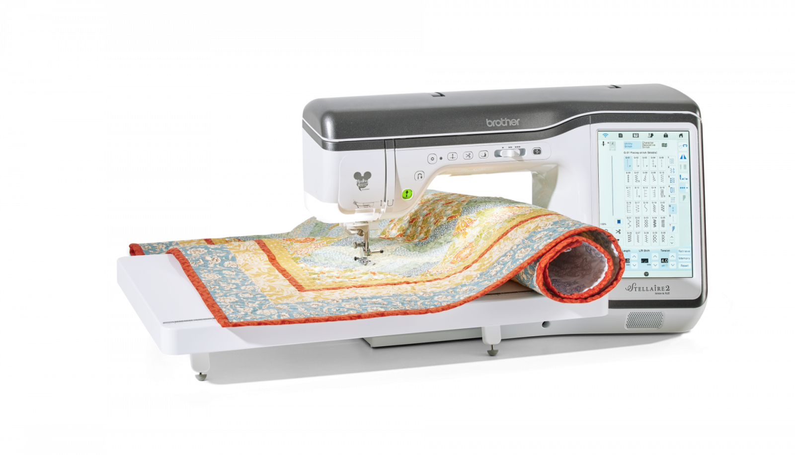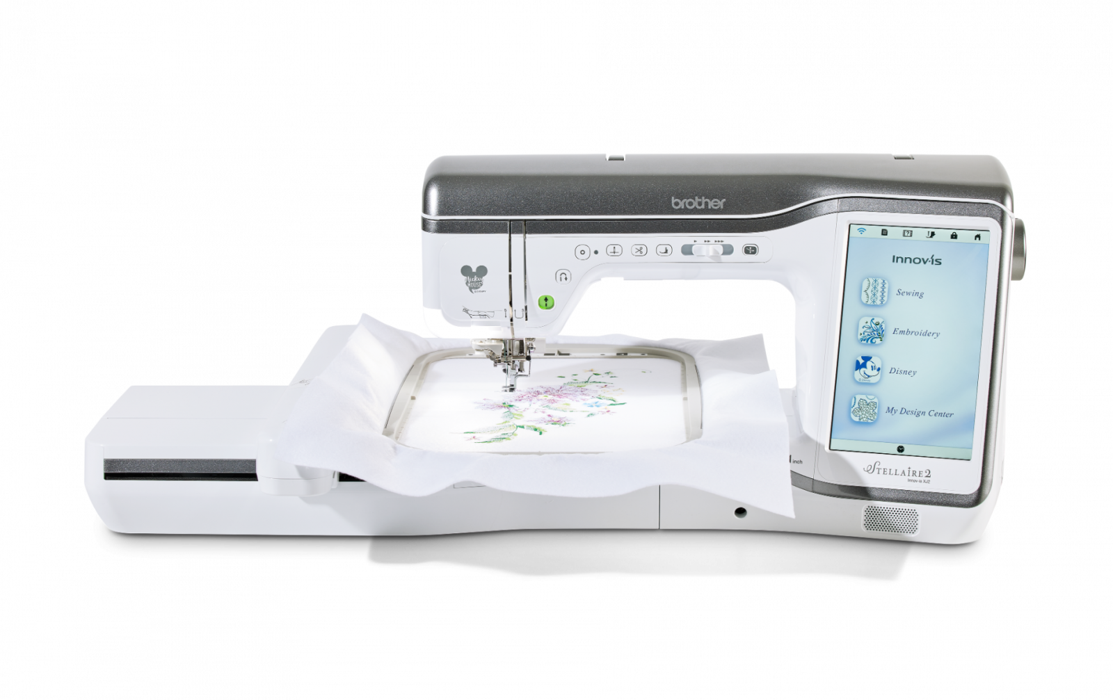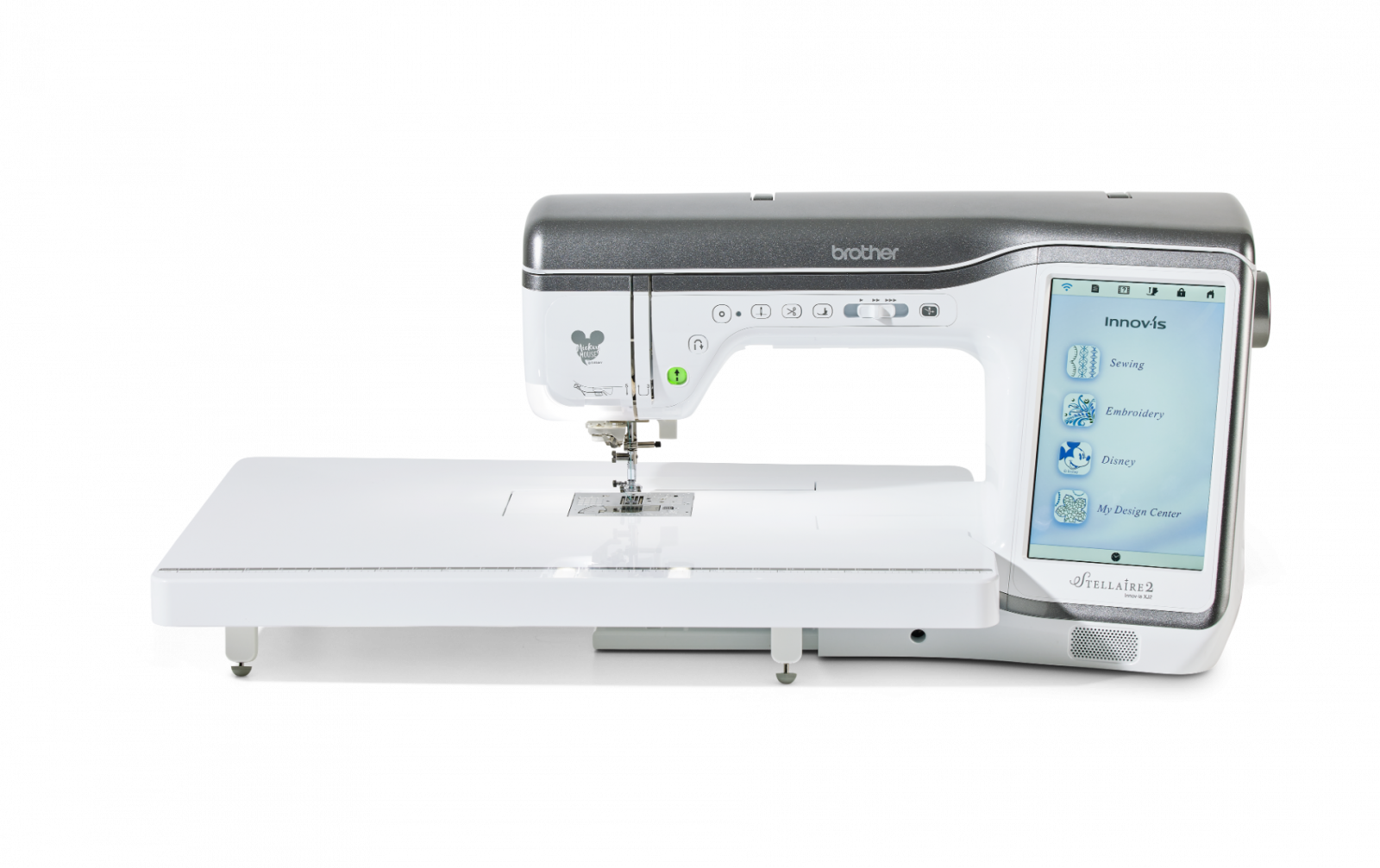 Cusut și broderie într-o singură mașină - Cu peste 780 de modele de broderie încorporate, 760 de cusături de cusut încorporate, tehnologie modernă și integrarea Artspira‡, mașina de cusut și brodat Stellaire2 Innov-ís XJ2 va fi mașina ta de cusut. Modele Disney încorporate - Stellaire2 Innov-ís XJ2 are 101 modele de broderie Disney încorporate chiar în interior, cu Mickey Mouse, Minnie Mouse, Goofy și Pluto de la Disney. În plus, personajele tale preferate din Frozen de la Disney, precum și din filmul Finding Nemo de la Disney și Pixar și Cars! Clienții Brother beneficiază de acces exclusiv la și mai multe modele de broderie Disney și Disney•Pixar prin Centrul de descărcare iBroidery.com Wireless Enabled - Stellaire2 Innov-ís XJ2 este wireless activat. Puteți primi notificări de actualizare a software-ului și puteți trimite fișiere de broderie de pe computer la mașina dvs. prin transferul gratuit al bazei de date de design (nu este necesar USB). Acest lucru permite gestionarea ușoară a datelor pentru toate modelele și proiectele dvs. Aplicații mobile - Proiectați desene inspirate de arta liniare pe dispozitivul dvs. mobil și transferați noile modele pe Stellaire2 Innov-ís XJ2 cu aplicația mobilă Artspira‡ printr-o conexiune wireless. Cu Artspira‡, crearea unei opere de artă personalizate nu a fost niciodată mai ușoară. Folosiți aplicația mobilă My Design Snap‡ pentru a transforma imaginile în linie, scrisul de mână sau clipurile imprimate în date de broderie. Este la fel de ușor ca 1-2-3. Fiți alertat când este timpul să schimbați firul sau când proiectul dvs. este finalizat cu aplicația My Stitch Monitor Funcția de poziționare a broderii - Bucurați-vă de funcțiile inovatoare de broderie pe Stellaire2 XJ2 cu poziționarea în 2 puncte cu indicator LED, care economisește timp, care vă va ajuta să aliniați modelele pentru plasarea broderiei exacte. Funcția de poziționare a broderii - Bucurați-vă de funcții inovatoare de broderie pe Stellaire2 XJ2 cu poziționarea în 2 puncte cu indicator LED, care economisește timp, care vă va ajuta să aliniați modelele pentru plasarea broderiei exacte. Design de broderie direct pe ecran Editati cu usurinta modelul broderiei si fonturile. Adaugati text, multiplicati, rotiti, oglinditi si modificati dimensiunea fara a avea nevoie de un computer Editare imbunatatita a literelor Dati viata cuvintelor Dvs. cu editorul de text usor de folosit. Curbati, aranjati, rotiti si reglati, toate acestea cu ajutorul ecranului tactil Stellaire. Spuneti ce aveti de spus, indiferent ce doriti sa spuneti. Mixarea culorilor cu noua functie “favorite” Mixarea culorilor nu a fost niciodata mai usoara sau nu v-a fost dat mai mult control. Alegeti modelul de broderie, paleta de culori si derulati prin multitudinea de variante de culori. Salvati pana la 9 favorite pentru a le compara si selectati-o pe cea finala. Paleta de fire imbunatatita Deoarece culoarea este importanta pentru Dvs. am inclus o paleta de culori imbunatatita cu o gama extinsa de marca si culoare. Indicator cu led de coborare a acului Vedeti exact unde va fi cusuta broderia si repozitionati cu acuratete folosind piciorusul indicator cu led. Alunecare libera Adaugati alunecari de-alungul modelului ales prin apasarea unui buton. Mai multa putere, mai multe posibilitati Viteza mare de brodat de pana la 1050 de impunsaturi pe minut a masinii Stellaire va ofera un finisaj profesional intr-un timp foarte scurt. Lasati imaginatia si creativitatea sa zboare cu biblioteca de peste 700 de modele de broderie incorporate. Tehnologie de precizie pentru finisaje profesionale Deoarece sunteti un foarte bun creator care doreste finisaje perfecte de fiecare data, am conceput Stellaire sa faca doar asta. Cu cele mai noi tehnologii de cusut si brodat veti avea o lungime a cusaturii constanta, linii drepte ca un laser si cusaturi uniforme ale marginilor, ori de cate ori va asezati la cusut. Caracteristici de nivel profesional ICAPS – detectarea automata a grosimii tesaturii mentine presiunea piciorusului constanta si lungimea cusaturii egala Piciorus avansat motorizat cu antrenare duala – un piciorus puternic pentru a coase cu usurinta o multitudine de tesaturi, chiar si denim sau matase Ghidaj de coasere laser de generatie noua – proiecteaza o linie dreapta direct pe tesatura ca ghidaj pentru cusutul drept. Este ideal pentru coaserea liniilor drepte paralele, sageti si cusaturi in sant Tasta de blocare a cusaturii – prin apasarea unui buton se pot face cusaturi de intarire la inceputul si sfarsitul cusaturii. Pe cusaturile decorative masina se va opri automat dupa terminarea motivului selectat Ecran color clar, usor accesibil – controlati toate aspectele modelului, cusaturii si broderiei Dvs. cu ajutorul ecranului tactil. Previzualizare clara a selectiei si combinatiei de cusaturi , si salvati cu usurinta preferintele cusaturii O gama larga de butoniere intr-un singur pas de pana la 6 mm latime Control avansat al piciorusului presor – se ridica automat dupa taierea atei si coboara cand se incepe coaserea My Custom Stitch™ - creati cusaturi decorative proprii direct pe masina Dvs. prin intermediul ecranului LCD tactil. Observati cum modele Dvs. prind viata pe ecranul tactil LCD de 10,1”, clar ca si cristalul Interfata intuitiva pentru utilizator Timpul este pentru creatie, astfel incat va oferim o interfata usor de utilizat cu iconite mari. Procesorul de foarte mare viteza inseamna editarea rapida si puternica pe ecran. Caracteristici de zoom (marire) si ajustari Pentru editarea detaliata a modelelor puteti mari pana la 800% (in My Design Center) sau pana la 200% in toate modurile. Cu inalta definitie, culorile si liniile raman vii si clare. Pentru a fii mai placut pentru ochi Iluminare LED imbunatatita cu 5 reglaje (inclusiv oprit) va permite gasirea nivelului de iluminare potrivit pentru Dvs Am proiectat iluminarea astfe
