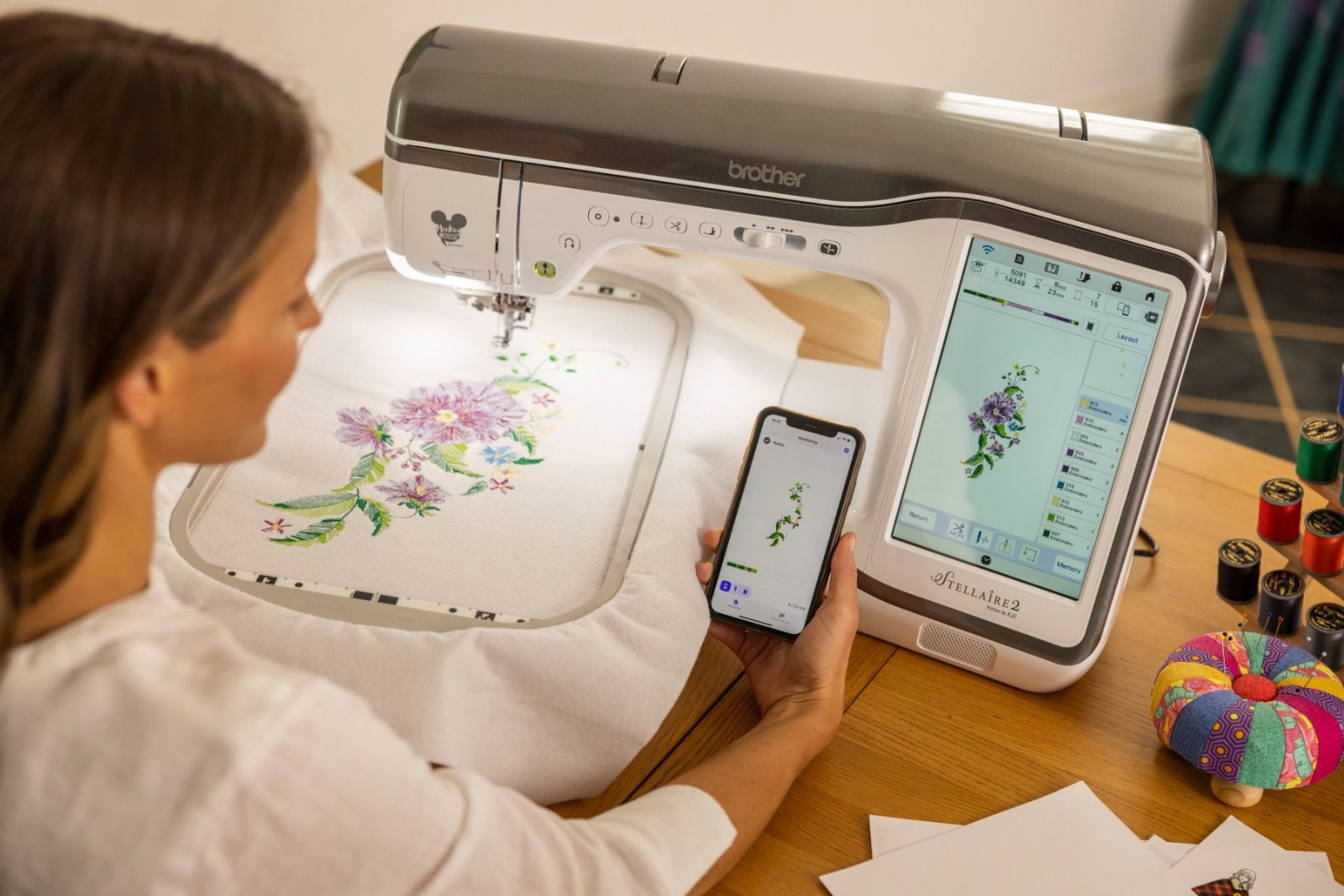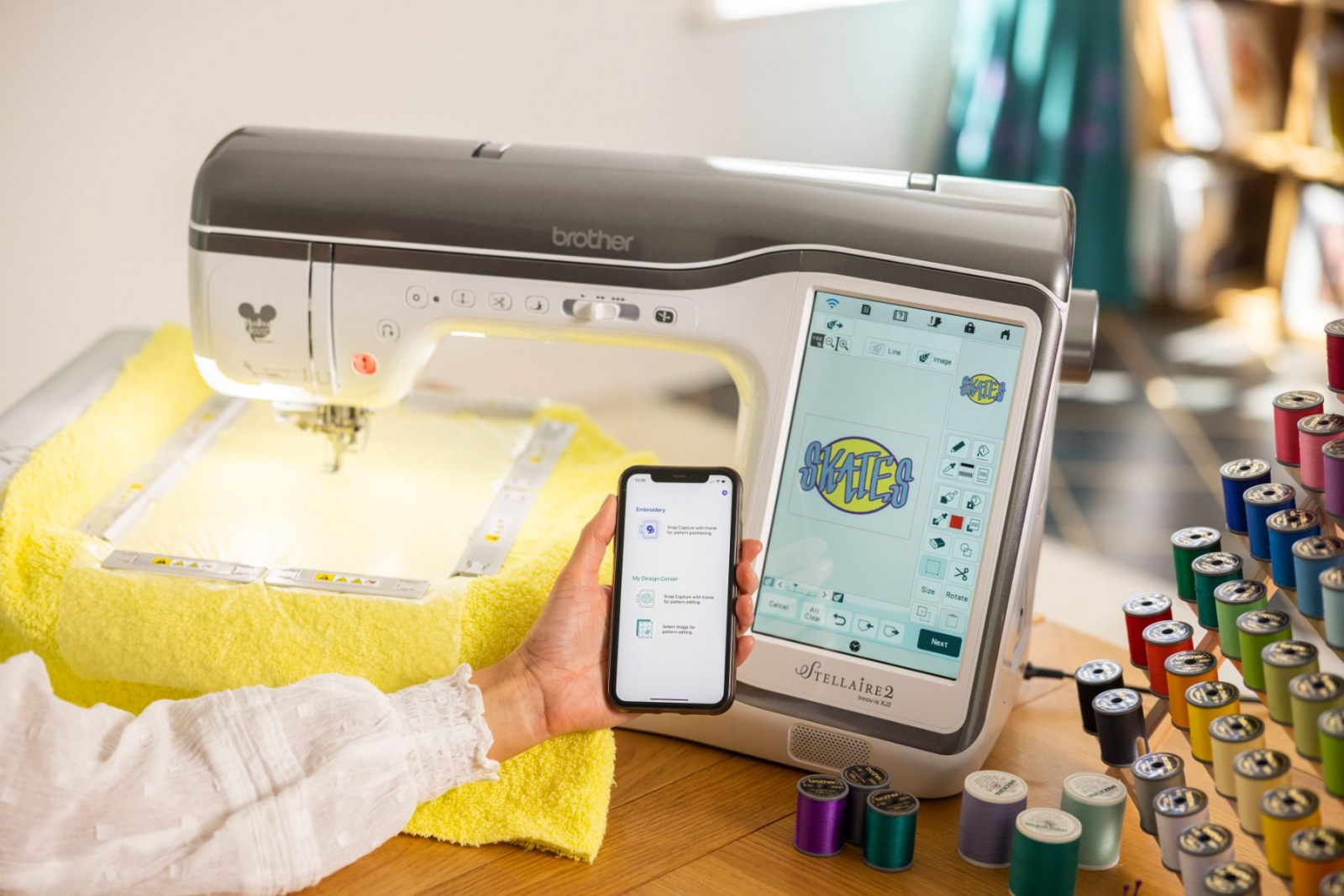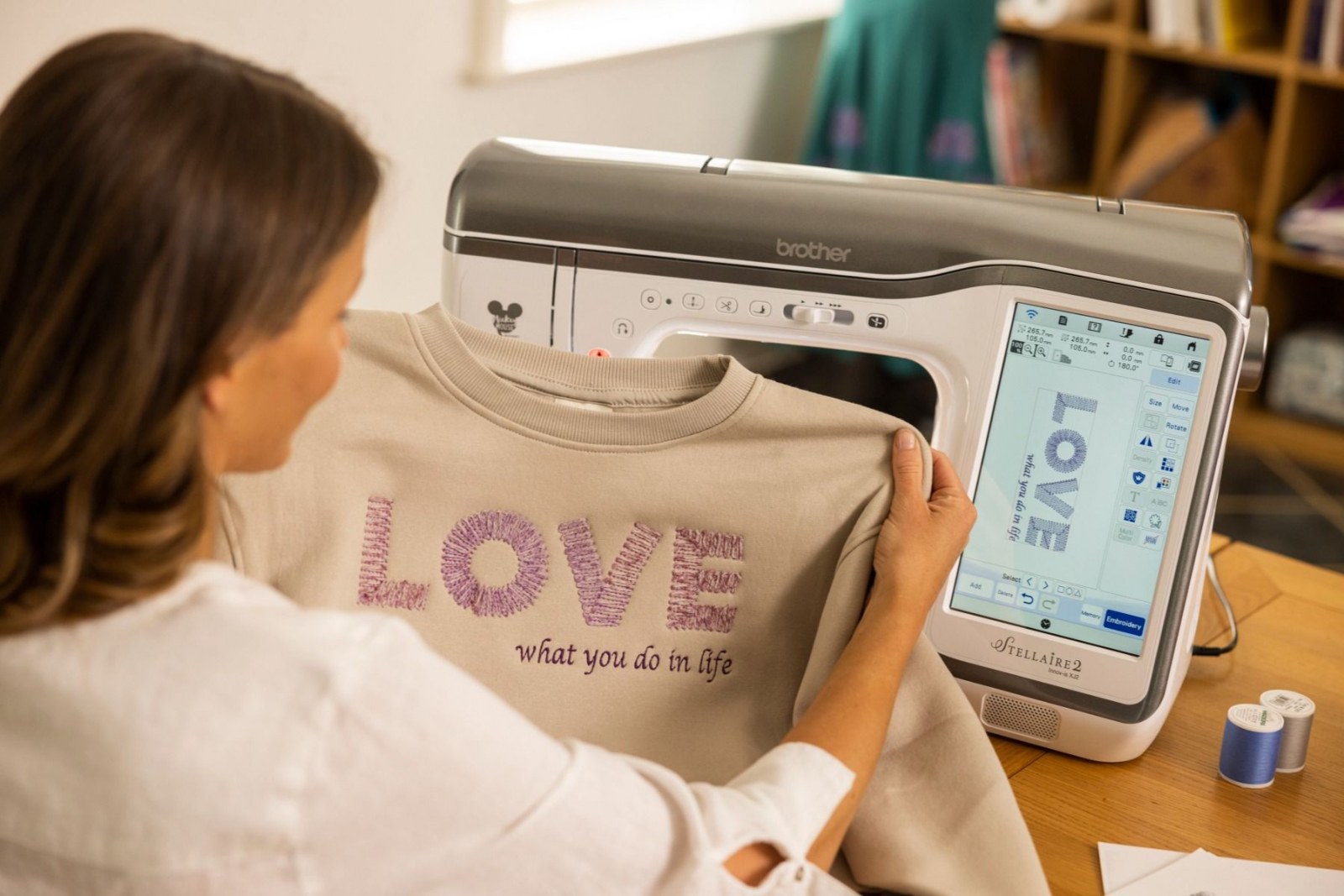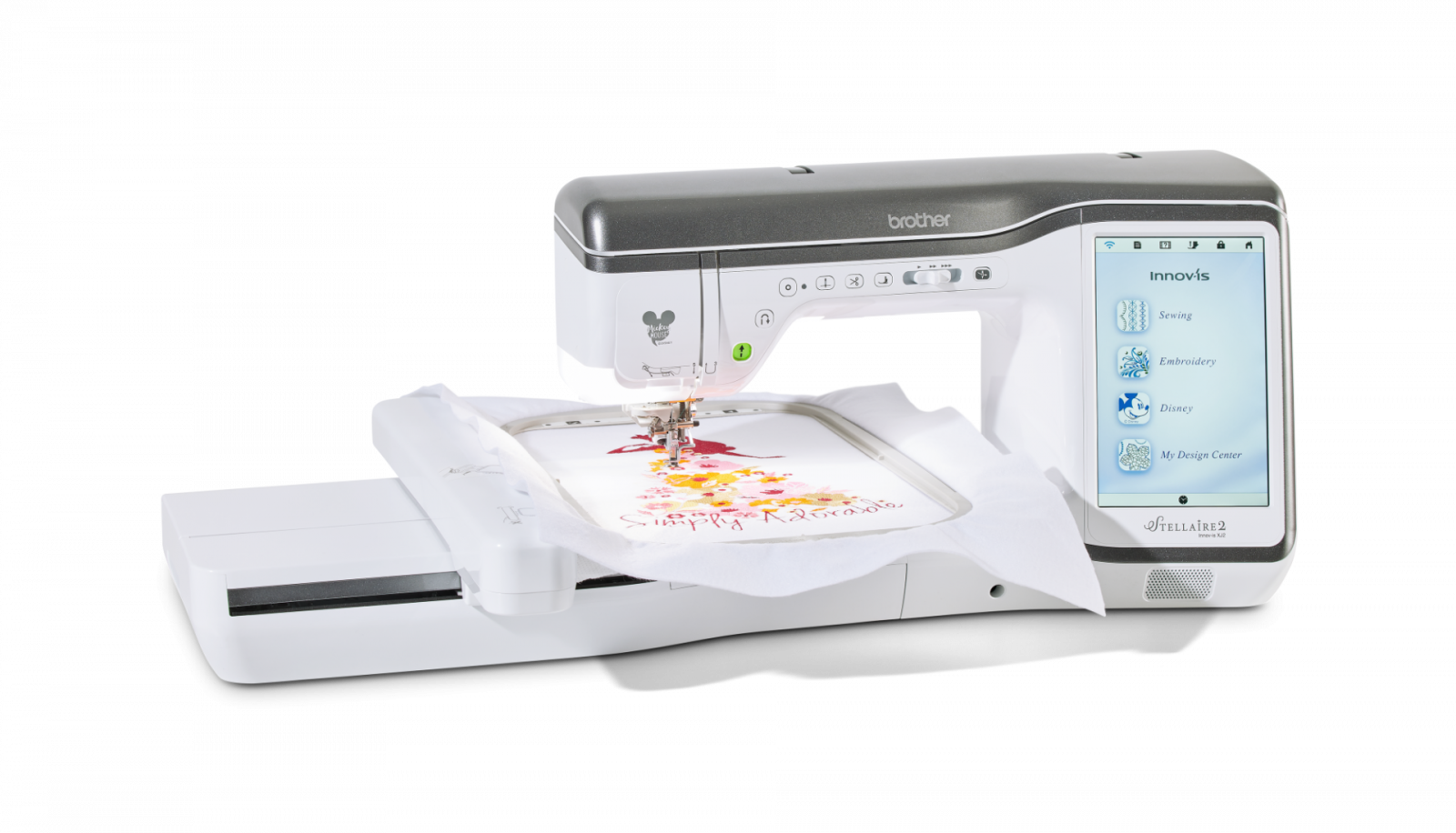 Cusut și broderie într-o singură mașină - Cu peste 780 de modele de broderie încorporate, 760 de cusături de cusut încorporate, tehnologie modernă și integrarea Artspira‡, mașina de cusut și brodat Stellaire2 Innov-ís XJ2 va fi mașina ta de cusut. Modele Disney încorporate - Stellaire2 Innov-ís XJ2 are 101 modele de broderie Disney încorporate chiar în interior, cu Mickey Mouse, Minnie Mouse, Goofy și Pluto de la Disney. În plus, personajele tale preferate din Frozen de la Disney, precum și din filmul Finding Nemo de la Disney și Pixar și Cars! Clienții Brother beneficiază de acces exclusiv la și mai multe modele de broderie Disney și Disney•Pixar prin Centrul de descărcare iBroidery.com Wireless Enabled - Stellaire2 Innov-ís XJ2 este wireless activat. Puteți primi notificări de actualizare a software-ului și puteți trimite fișiere de broderie de pe computer la mașina dvs. prin transferul gratuit al bazei de date de design (nu este necesar USB). Acest lucru permite gestionarea ușoară a datelor pentru toate modelele și proiectele dvs. Aplicații mobile - Proiectați desene inspirate de arta liniare pe dispozitivul dvs. mobil și transferați noile modele pe Stellaire2 Innov-ís XJ2 cu aplicația mobilă Artspira‡ printr-o conexiune wireless. Cu Artspira‡, crearea unei opere de artă personalizate nu a fost niciodată mai ușoară. Folosiți aplicația mobilă My Design Snap‡ pentru a transforma imaginile în linie, scrisul de mână sau clipurile imprimate în date de broderie. Este la fel de ușor ca 1-2-3. Fiți alertat când este timpul să schimbați firul sau când proiectul dvs. este finalizat cu aplicația My Stitch Monitor Funcția de poziționare a broderii - Bucurați-vă de funcțiile inovatoare de broderie pe Stellaire2 XJ2 cu poziționarea în 2 puncte cu indicator LED, care economisește timp, care vă va ajuta să aliniați modelele pentru plasarea broderiei exacte. Funcția de poziționare a broderii - Bucurați-vă de funcții inovatoare de broderie pe Stellaire2 XJ2 cu poziționarea în 2 puncte cu indicator LED, care economisește timp, care vă va ajuta să aliniați modelele pentru plasarea broderiei exacte. Design de broderie direct pe ecran Editati cu usurinta modelul broderiei si fonturile. Adaugati text, multiplicati, rotiti, oglinditi si modificati dimensiunea fara a avea nevoie de un computer Editare imbunatatita a literelor Dati viata cuvintelor Dvs. cu editorul de text usor de folosit. Curbati, aranjati, rotiti si reglati, toate acestea cu ajutorul ecranului tactil Stellaire. Spuneti ce aveti de spus, indiferent ce doriti sa spuneti. Mixarea culorilor cu noua functie “favorite” Mixarea culorilor nu a fost niciodata mai usoara sau nu v-a fost dat mai mult control. Alegeti modelul de broderie, paleta de culori si derulati prin multitudinea de variante de culori. Salvati pana la 9 favorite pentru a le compara si selectati-o pe cea finala. Paleta de fire imbunatatita Deoarece culoarea este importanta pentru Dvs. am inclus o paleta de culori imbunatatita cu o gama extinsa de marca si culoare. Indicator cu led de coborare a acului Vedeti exact unde va fi cusuta broderia si repozitionati cu acuratete folosind piciorusul indicator cu led. Alunecare libera Adaugati alunecari de-alungul modelului ales prin apasarea unui buton. Mai multa putere, mai multe posibilitati Viteza mare de brodat de pana la 1050 de impunsaturi pe minut a masinii Stellaire va ofera un finisaj profesional intr-un timp foarte scurt. Lasati imaginatia si creativitatea sa zboare cu biblioteca de peste 700 de modele de broderie incorporate. Tehnologie de precizie pentru finisaje profesionale Deoarece sunteti un foarte bun creator care doreste finisaje perfecte de fiecare data, am conceput Stellaire sa faca doar asta. Cu cele mai noi tehnologii de cusut si brodat veti avea o lungime a cusaturii constanta, linii drepte ca un laser si cusaturi uniforme ale marginilor, ori de cate ori va asezati la cusut. Caracteristici de nivel profesional ICAPS – detectarea automata a grosimii tesaturii mentine presiunea piciorusului constanta si lungimea cusaturii egala Piciorus avansat motorizat cu antrenare duala – un piciorus puternic pentru a coase cu usurinta o multitudine de tesaturi, chiar si denim sau matase Ghidaj de coasere laser de generatie noua – proiecteaza o linie dreapta direct pe tesatura ca ghidaj pentru cusutul drept. Este ideal pentru coaserea liniilor drepte paralele, sageti si cusaturi in sant Tasta de blocare a cusaturii – prin apasarea unui buton se pot face cusaturi de intarire la inceputul si sfarsitul cusaturii. Pe cusaturile decorative masina se va opri automat dupa terminarea motivului selectat Ecran color clar, usor accesibil – controlati toate aspectele modelului, cusaturii si broderiei Dvs. cu ajutorul ecranului tactil. Previzualizare clara a selectiei si combinatiei de cusaturi , si salvati cu usurinta preferintele cusaturii O gama larga de butoniere intr-un singur pas de pana la 6 mm latime Control avansat al piciorusului presor – se ridica automat dupa taierea atei si coboara cand se incepe coaserea My Custom Stitch™ - creati cusaturi decorative proprii direct pe masina Dvs. prin intermediul ecranului LCD tactil. Observati cum modele Dvs. prind viata pe ecranul tactil LCD de 10,1”, clar ca si cristalul Interfata intuitiva pentru utilizator Timpul este pentru creatie, astfel incat va oferim o interfata usor de utilizat cu iconite mari. Procesorul de foarte mare viteza inseamna editarea rapida si puternica pe ecran. Caracteristici de zoom (marire) si ajustari Pentru editarea detaliata a modelelor puteti mari pana la 800% (in My Design Center) sau pana la 200% in toate modurile. Cu inalta definitie, culorile si liniile raman vii si clare. Pentru a fii mai placut pentru ochi Iluminare LED imbunatatita cu 5 reglaje (inclusiv oprit) va permite gasirea nivelului de iluminare potrivit pentru Dvs Am proiectat iluminarea astfe
