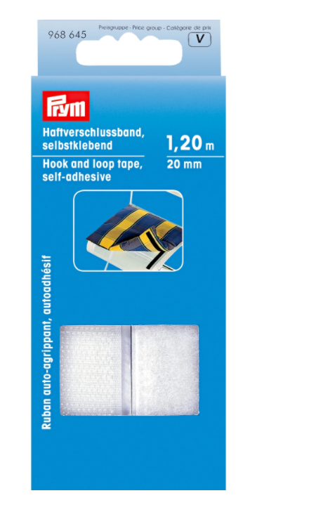 PRYM Banda Velcro, arici, auto-adeziva, 1,20 m lungime x 20 mm latime, alb